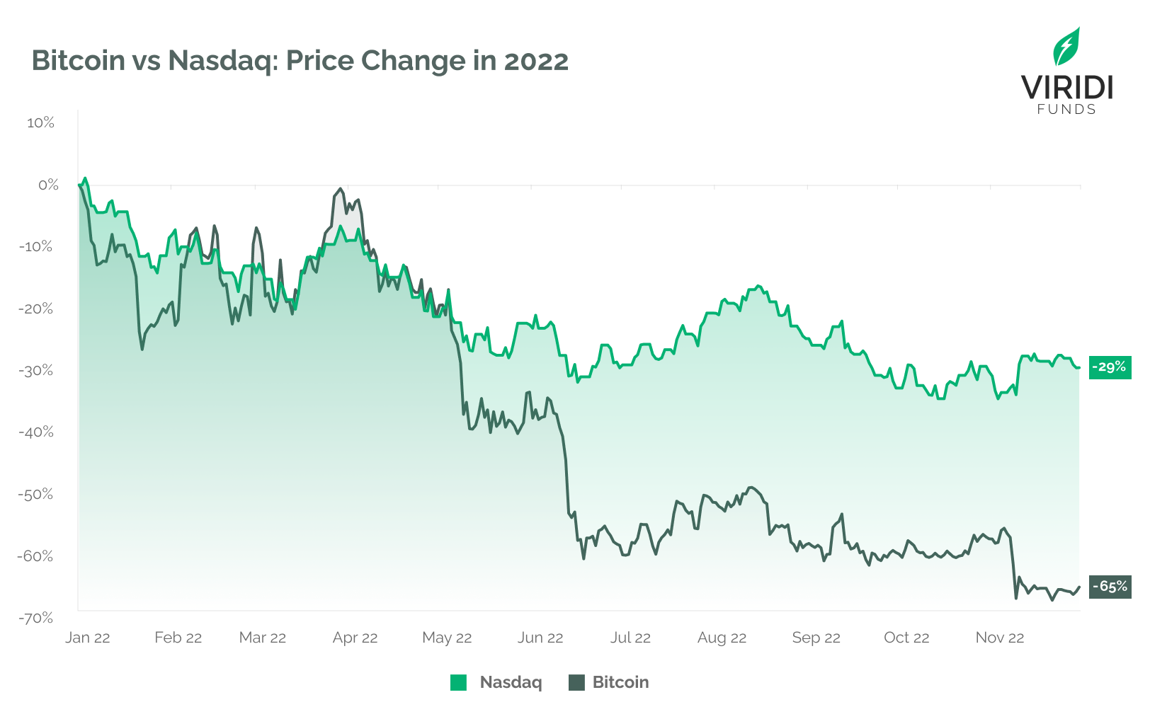 Due to the tightening monetary policy, 2022 has been a tough year for most financial assets. Bitcoin has been highly correlated with the Nasdaq since mid-2020, albeit with significantly higher volatility. With Nasdaq down 29% year-to-date, it is no surprise that bitcoin has struggled this year.