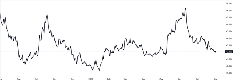 Despite the massive price fluctuations, the Bitcoin protocol continues to perform without any issues. While many alternative cryptocurrencies have suffered outages or material changes to their use cases, Bitcoin remains a strong store of value and offers unparalleled security for investors. In our view, during depressed economic prices for altcoins, we see investors returning to larger Bitcoin allocations within their portfolio. Bitcoin dominance, a metric that tracks Bitcoin market cap against the total cryptocurrency market cap, increased from a low at the start of 2022 of 39% to a high of 49%. While many altcoins have decreased in price more significantly than Bitcoin in H1, it is our estimate that Bitcoin will remain a dominant allocation for many investors going forward. By the end of the year, Viridi Funds would expect the allocation to be in between 45% and 50%.