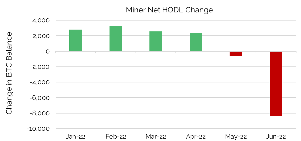 Some Bitcoin miners participated in the recent selloff. Most notably, Bitfarms and Core Scientific sold significant parts of their “HODLs” i.e. their long term Bitcoin positions, in order to boost liquidity and de-lever parts of their balance sheets that had become stressed. This selling pressure added fuel to the fire in an already weak Bitcoin market.