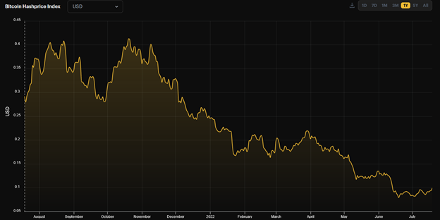 The steep drawdown in Bitcoin has resulted in a reduction in hashprice, a metric used to track the value of one unit of compute power from a mining machine. Hashprice has decreased by 63% since the start of the year and has impacted top-line revenue for many companies. In light of the selloff, Bitcoin miners with top efficiency ASIC fleets and access to industrial electricity rates can still achieve gross margins of 60-70% at $20k Bitcoin. We believe the lowest breakeven operators and those with robust balance sheets and economies of scale will be the best performers over the next six months.